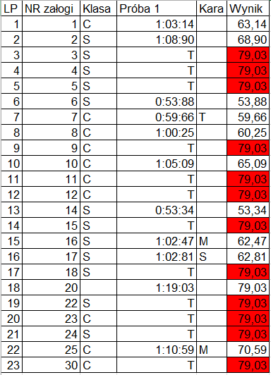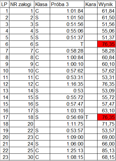 Po dwudniowych zmaganiach tak wygląda klasyfikacja na podium w poszczególnych klasach: